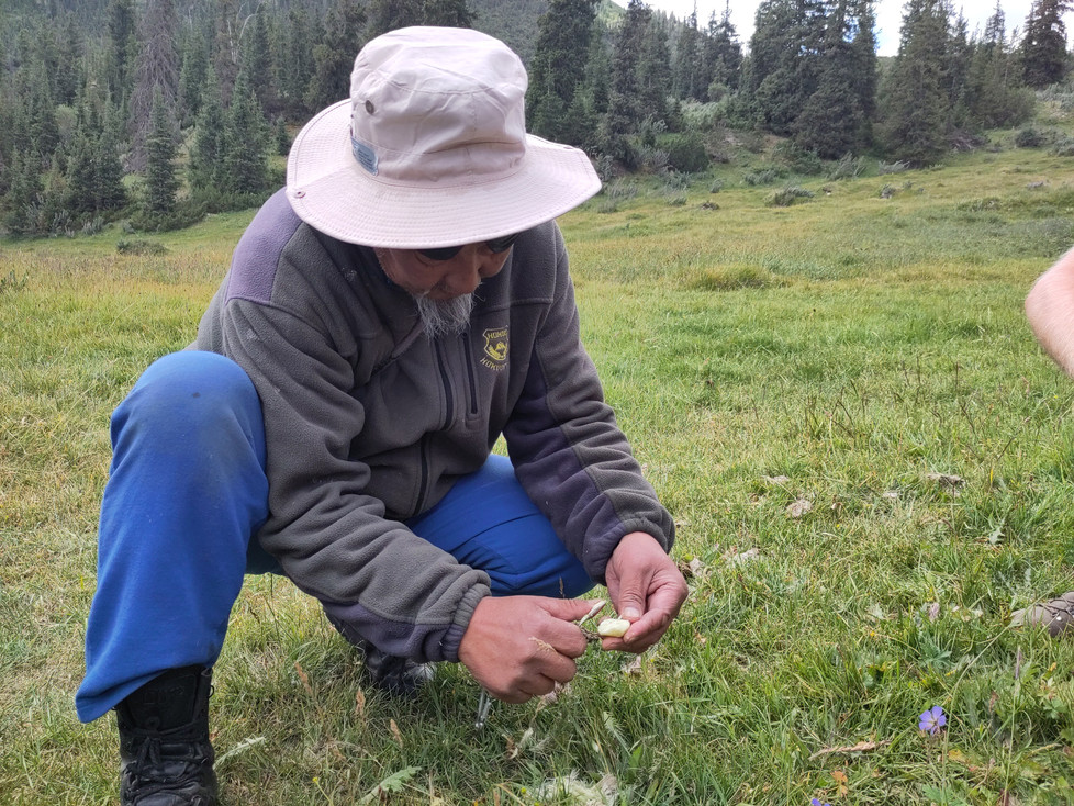 To investigate which fauna and flora were present, part of our activities while on tour were to deploy camera traps, quadrats and using macro lenses to document our findings. To my surprise, we found an extraordinary variety of butterflies, moth and grasshoppers scattered across the grassy hummocks at altitudes exceeding 3500m. The most vivacious critter was the marmot which we frequently spotted squatting burrows at the tops of saddle summits. After I spotted a stoat while eating lunch within a grassy cavernous overhang, we decided to deploy the camera traps and recorded numerous sightings of stoats chilling out n about – mostly under the cover of darkness. Amongst other wildlife, we found a wide selection of edible spring onion varieties, huge thistles that you’d presume were under immense predatory stress in addition to many other unidentified wildflowers and masquerading parasitic bee-fly. We also assembled some track pads to identify small mammal tracks though unfortunately the weather got the better of these. At basecamp, we were often met with frequent lightening storms which funnelled wind and dust through the valley and ripped many group tents due to the ferocious nature of each gust and occasional outbursts of rain though otherwise had experienced fair weather.